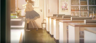 미조레와 노조미의 성격과 상황을 묘사하는 것에서는 감독의 강점인 움직임 연출이 주로 사용되었다. 두 사람이 함께 음악실로 향하는 초반부 장면에서 노조미는 힘차게 걸으며 실내화를 아무렇게나 던지고, 물을 마시고, 난간을 짚는다. 노조미의 머리카락은 하늘하늘 흔들리고 있다.